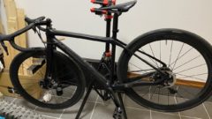 そこにマスキングテープを貼ってもう一度その周辺まで自転車を持ち上げて周囲の干渉や自分でそこまで持ち上げられるかなど確認します。
