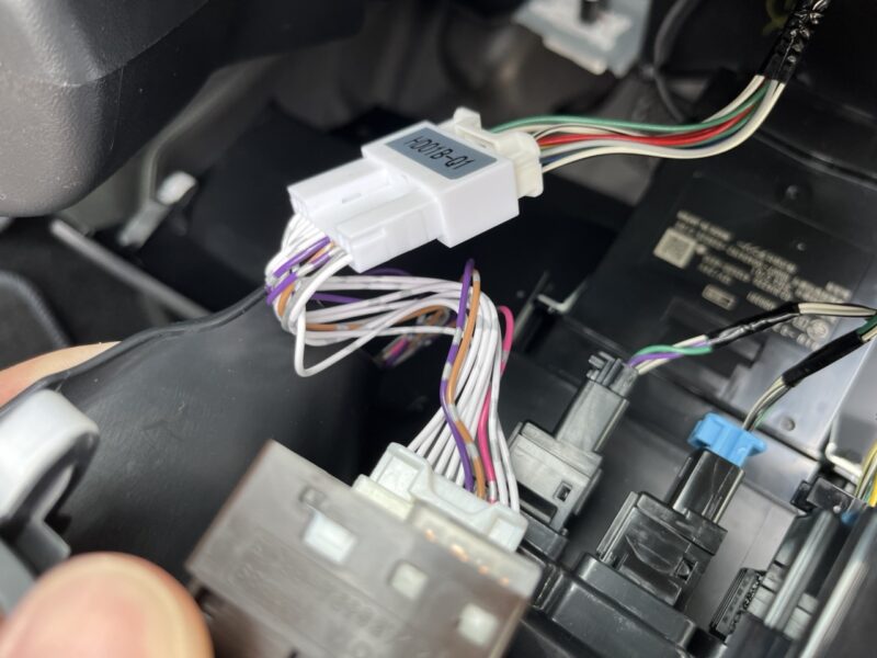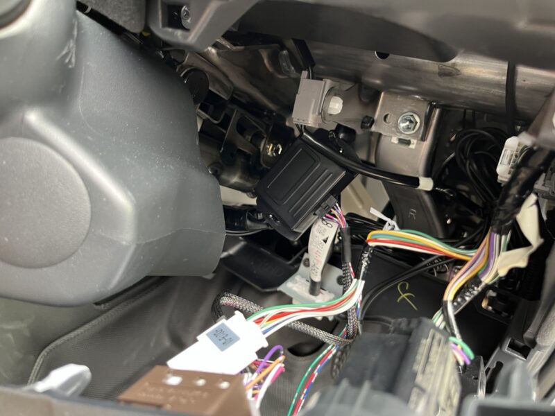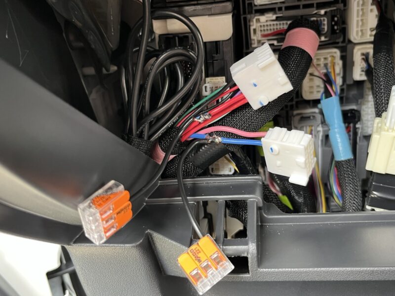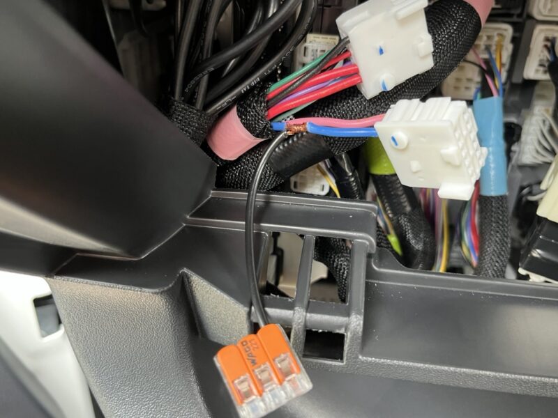 写真ないですが、足元の配線に抱き合わせて助手席側のヒューズBOXまで配線を引き回します。