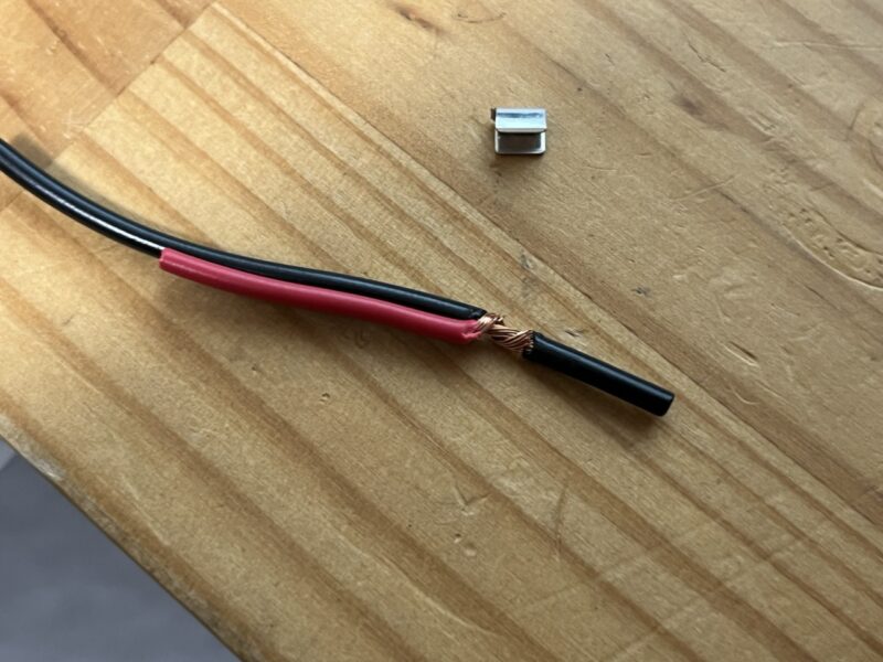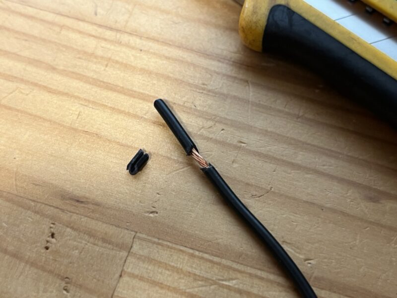 無理やり固定しようとしたエレクトロタップのせいで銅線が数本切れていました…やってしまったと思いつつ、エレクトロタップでの接続を中止して別の方法を考えます。