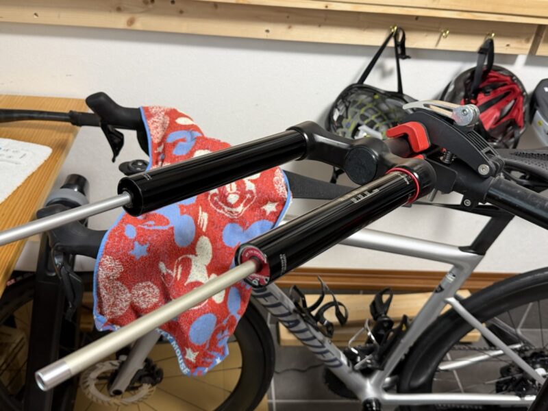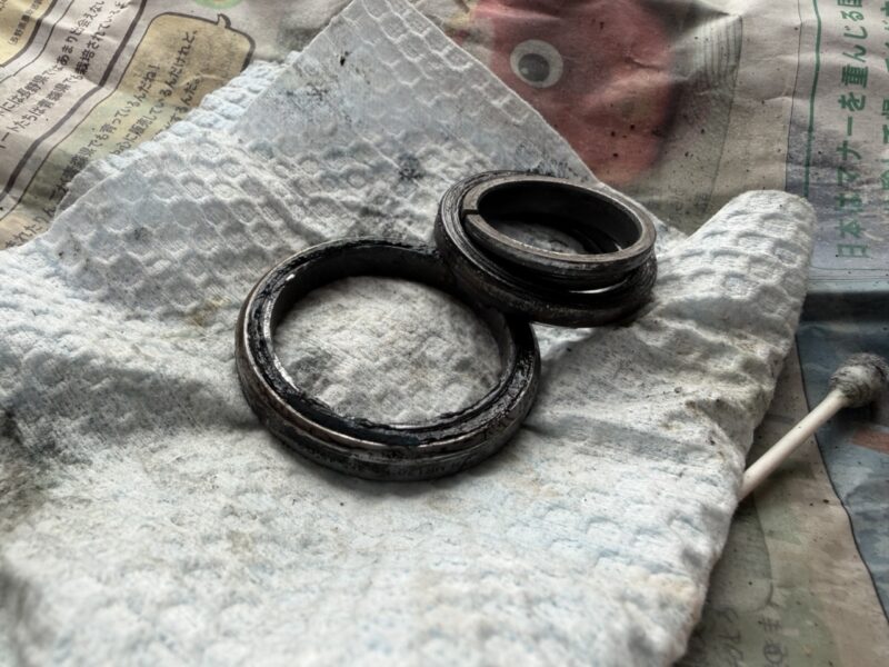 フォークバラすのは二回目です。オイル交換だけなら長くても半日あれば終わります。雨、泥をそれなりに走りましたがオイルが極端に劣化している感じはありません。