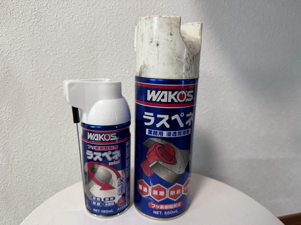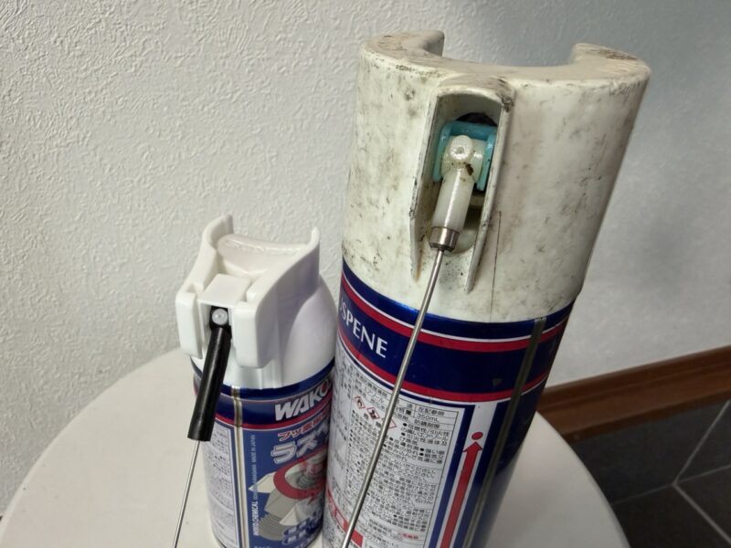 10年の間、内部のガスが抜けずに最後の最後まで潤滑油を吹き出していました。缶を廃棄するときに穴を開けますが、中から出てきた油はほぼ無く、さすがWAKOS。
