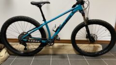 カーボン製のフレームで入門用に購入したMTBの半分くらいの重量で激軽です。小指で持てちゃう感じです。